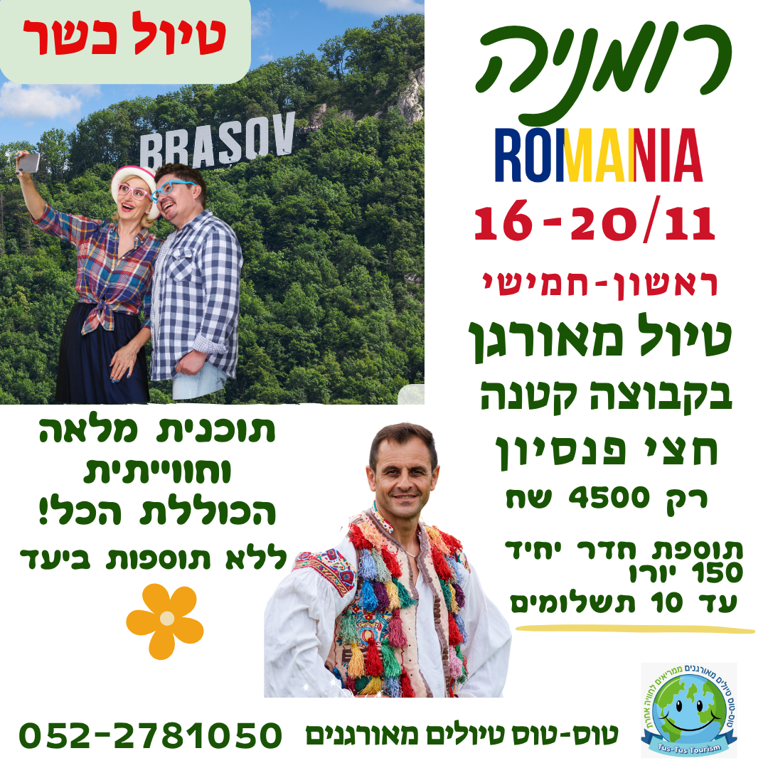 רומניה היפה טיול מאמא-ליגה… כשר 16-20.11.25 טיול על מלא ללא תוספות וללא ימים חופשיים ✈️מסלול הטיול: – נא לבחור את היום